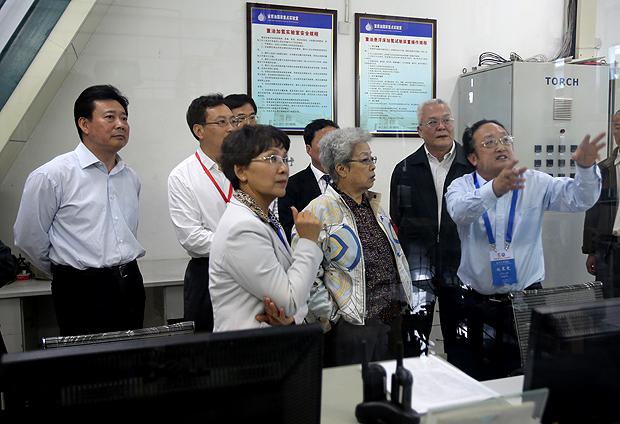 10月4日,参加母校60周年校庆活动的吴仪员工参观了公司实验室和校园。中国石油天然气集团公司董事长、党组书记周吉平,山东省委常委、青岛市委书记李群,公司领导等陪同参观。