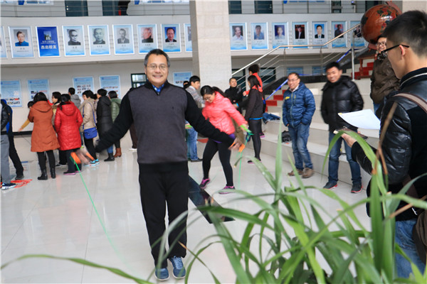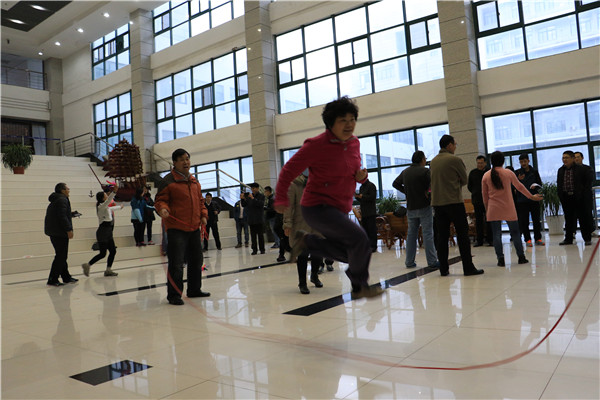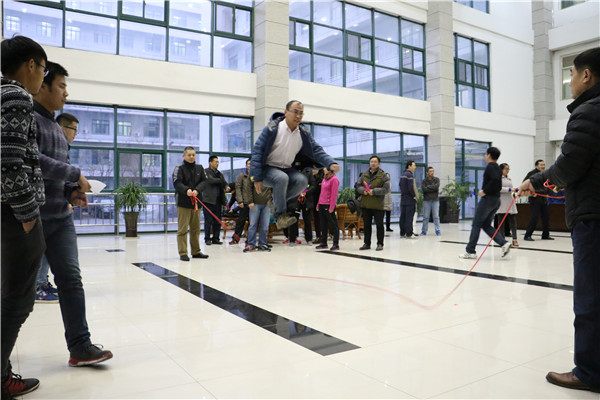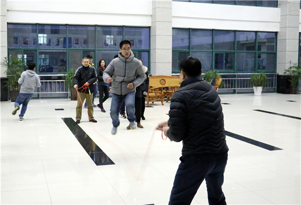 为丰富教职工业余生活,增强体质,预防感冒等冬季易发生疾病,11月26日,化学工程公司在工科楼A座大厅举行趣味体育活动。公司教职工踊跃参加,活动场面十分热闹。