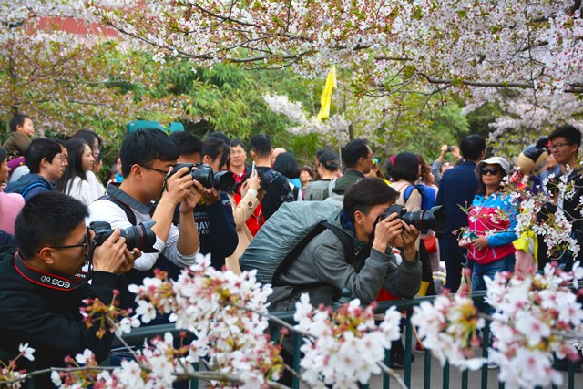 来到青岛中山公园后,魏孟吉首先向通讯社员工记者们介绍了相机操作的进阶窍门,并针对此次采风之旅详细讲解了有关风光与静物的摄影技巧,同时就地取材实地演示操作方法。接下来,记者们自由取景拍摄公园中的花草树木,人来人往,郭康乐聚焦在大片红花中的一朵紫花上,利用刚刚学到的构图法进行拍摄,所得照片获得了魏孟吉的赞赏,其他员工记者纷纷效仿学习。接下来,魏孟吉讲解了公园中不同植物的品行特点和鉴别方法,比如远近驰名的樱花、夺人眼球的郁金香等等,希望大家拥有一双发现美的眼睛,用手中的相机记录下来,让摄影丰富自己的生活,记录自己的人生。