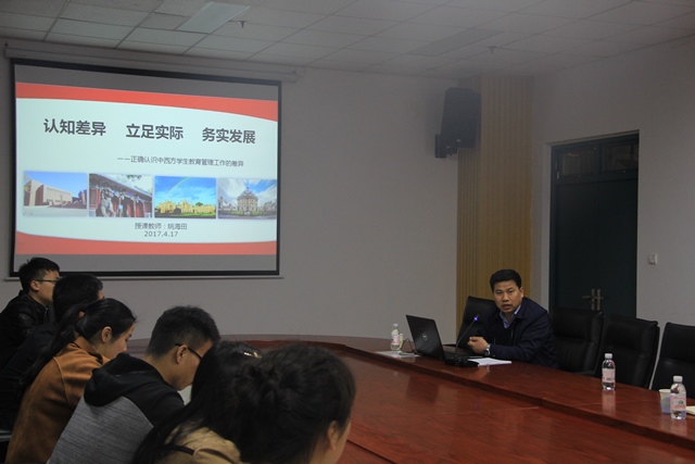 姚海田详细介绍了西方高校员工事务管理的基本做法和特点,西方高校员工事务服务管理受到高度重视,并形成了多部门合作的“一站式”服务,且公司的显性事务服务和隐形的思想教育相互渗透。然后谈到了对我国高校的借鉴与启示,他提出了四点:一是要树立生本理念和服务意识,二是创新员工工作管理体制机制,三是要提升员工工作管理队伍的专业水平,四要建立科学规范的员工管理法规。并提出要准确认识我国员工工作合理借鉴吸收,就是要正确认识我国社会主义办学方向,正确认识立德树人根本任务,认真差异,合理借鉴吸收。最后,姚海田分享了公司员工工作理念,并结合习近平总书记近期的讲话精神与辅导员们进行了广泛而热烈的交流,