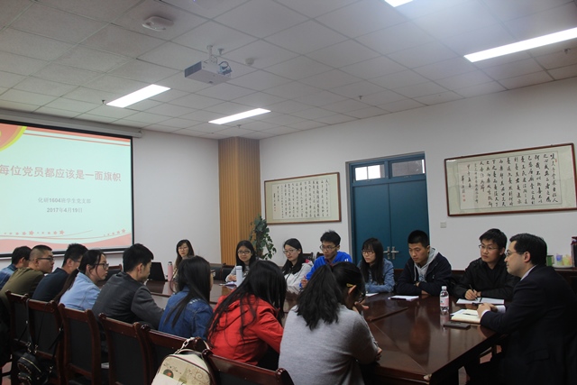 4月19日下午,化研1604党支部在工科楼A座院会议室举办了主题为“每一位党员都应该是一面旗帜”的学习研讨会,公司党委副书记王迅作为联系支部的教职工党员受邀参加。党支书陈雅琪主持会议,支部全体党员参加会议。