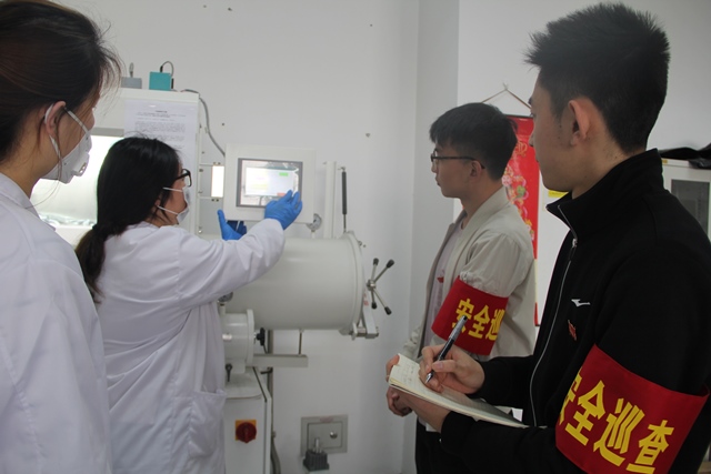 实验室安全巡查从4月18日开始。2013级员工党员肖承燃、郑永申、徐枫皓、周滔巡查了工科楼A座以及逸夫实验楼的部分实验室,重点检查高温高压设备的工作情况以及监管情况。“每年毕设做实验期间,都有大大小小的安全事故发生。我们千万不能掉以轻心”2013级员工党员周肖承燃说,“很多的事故都是由同学们一时间的疏忽造成的。通过定期检查,我们希望能够发挥党员的模范带头作用,监督做实验的同学们是否玩忽职守,来加强大家的警惕性。”在巡查新能源科学与技术研究中心实验室时,实验人员为巡查党员讲解了高温高压反应器的工作状态,并展示了反应器温度压力等数据的监控日志,确保了零安全隐患出现。