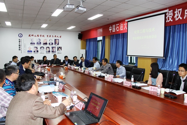 化学工程公司经理杨朝合教授介绍了公司概况及近几年化学工程公司建设情况。化学工程公司刘晨光教授从化学工程与技术学科基本情况、培养目标与标准、基本条件、人才培养、特色与优势、问题及改进等方面进行博士学位授权点合格评估汇报,同时对专业学位授权点进行合格评估汇报。