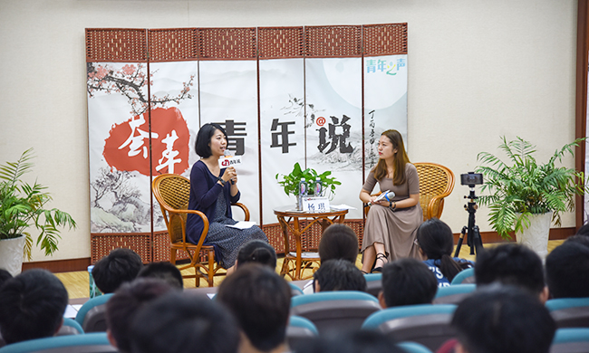 杨琪与师生分享她投身乡村公益事业的经历与感悟 马圣荦摄影