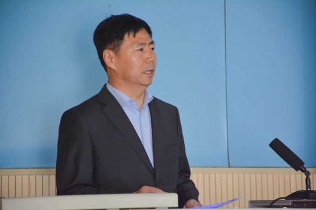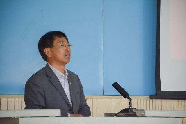 沈刘峡为学员讲授《党的性质和根本宗旨》一课 李博一摄影