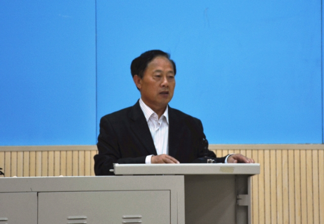 纪效田为学员讲授《党的宗旨》一课摄影 李博一