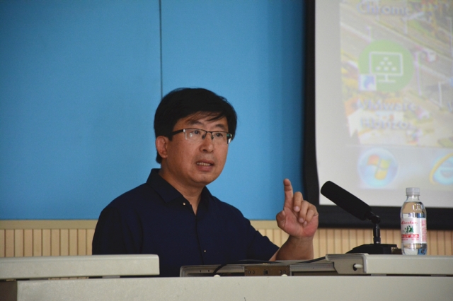 张展为员工讲授《老员工党员在网络意识形态引导中的定位与作用》一课 李博一摄影