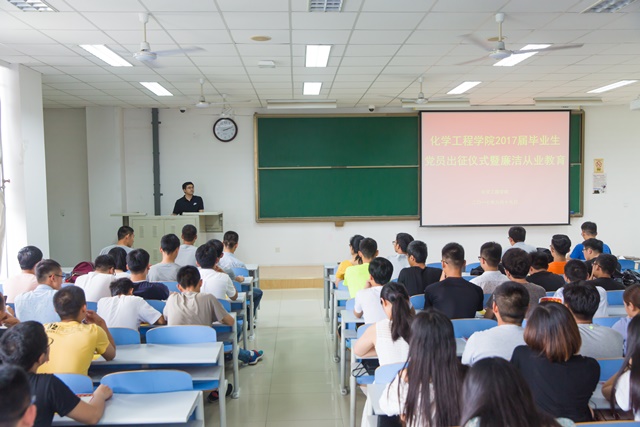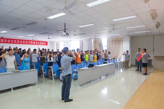 6月19日下午,化学工程公司毕业生党员出征仪式暨廉洁从业教育讲座在南教209举行,仪式由公司毕业班辅导员郭孟主持,纪委办公室副主任、监察处副处长梁秀萍和公司党委副书记王迅应邀出席。