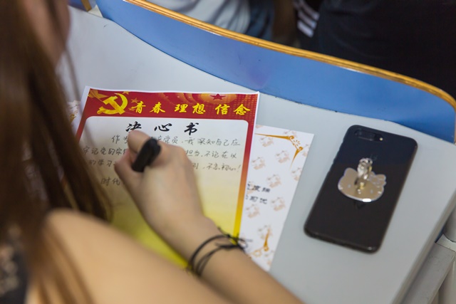 出征仪式最后,全体毕业生党员在鲜红的党旗前重温了入党誓词,牢记入党初心,铭记党员的理想信念,努力践行党员承诺。随后全体毕业生党员在决心书上郑重写下对党、对母校的承诺。