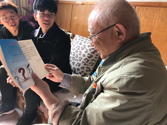 魏世杰老人曾在国家秘密基地工作,从事国防科研26年,经历两次爆炸,见证了我国“两弹一星”的成功研制,先后有17项科研成果获得国防科工委的奖励。在老人家中,魏世杰老先生给同学们讲叙了他参与研究原子弹、氢弹等工作的经历,以及他如今为普及科学知识而进行科普写作的故事。之后,同学们为老人送上卡片祝福——“送您春风让您心旷神怡,送您细雨洗去疲惫的汗迹,祝您重阳节快乐!”。魏老兴起,一同和红阳先锋实践队队员们唱起了《唱支山歌给党听》,怀念那段难忘的禁地青春。红阳先锋实践队队长袁俊聪也精心为魏老先生带来了诗朗诵《采桑子·重阳》,在社区居民和魏老的掌声中活动圆满成功。