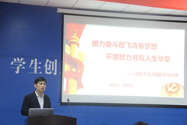 10月28日,化学工程公司于老员工活动中心二楼学术报告厅开展了“接力奋斗放飞青春梦想,不懈努力书写人生华章”——党的十九大报告学习心得主题讲座。本次讲座由化工公司团委书记徐光辉主讲,化工公司全体班长、团支书参与此次讲座。