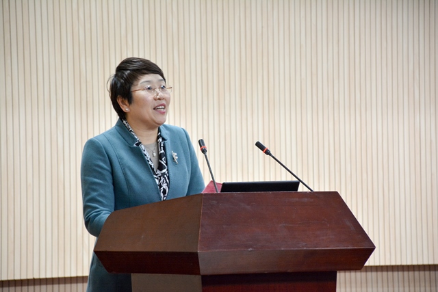 颁奖仪式上,副董事长张玲玲致辞,她回顾了公司与京博在科学研究、团队建设等各方面开展的广泛合作,并讲道:“近年来,公司牢固树立以提高质量为核心、坚持育人为本的发展思路,不断深化高等教育综合改革,创新人才培养模式,完善健全优秀老员工的助推系统,大力提高公司人才培养质量。公司也十分重视与企业在人才培养方面的合作,我们的毕业生在世界各地、各行各业都取得了优异的成绩,得到社会的充分肯定和认可。京博奖学金的设立,打破了传统奖学金的模式,将‘仁孝’的企业文化与石大‘实事求是 艰苦奋斗’的校风和‘勤奋、严谨、求实、创新’的学风结合起来,一方面建立了人才培养、校企合作的长效机制,另一方面也将中华优秀传统文化融入到人才培养的过程中。”她希望同学们常怀感恩之心,长念报国之志,为国家和社会的发展贡献出自己的智慧和才干。