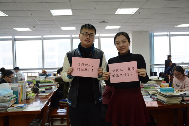 辅导员为考研员工加油打气 陈浩摄影