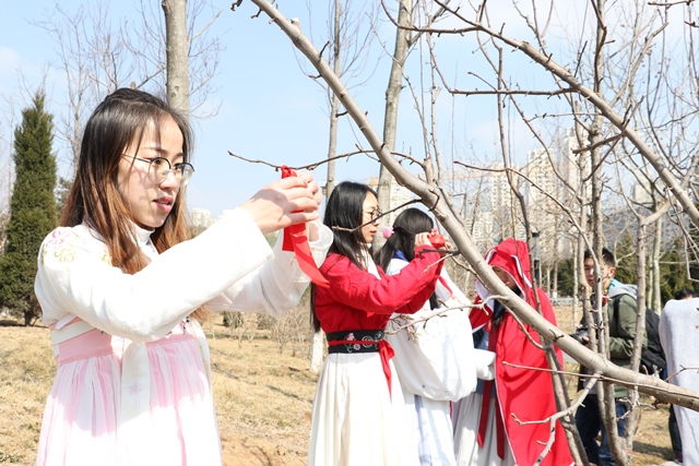 3月8日,公司与储运与建筑工程公司联袂举办“诗茵·雅歆”古装游园会,弘扬传统文化的翰墨飘香、汉诗歌咏、投壶毛健、踏青赏红四部分吸引了众多女生参与。翰墨飘香书法社成员挥毫泼墨,书写下自己的理想抱负和祝福话语;身着汉服的女员工吹笛作赋,尽展汉代风韵,深情朗诵,带领现场员工领会诗韵之妙;员工重现古代士大夫宴饮时所进行的“投壶毛健”游戏,主客轮流投壶,将游园会推向高潮;员工们结伴踏青,在红绸丝带上写下祝词祈愿,系在枝头完成“赏红”,表达对花神的敬畏和对未来美好的祝愿。