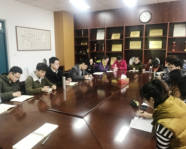 2015级辅导员徐光辉带领支部学习两会的相关内容。支部成员们结合自身的学习、经历以及家乡的发展变化从多个方面开展交流和讨论。徐光辉说:“通过大家的发言,能感受到每个人的变化。你们跟一年前相比有了很大提升。但是身为员工党员,保持坚定的政治立场是最基本的,我们更应该做到的是敢于发声。”