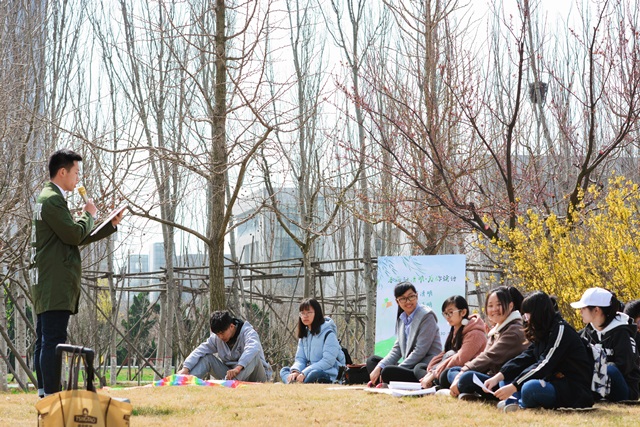 “杨柳青,放风筝”,朗读诗词之后的学清明环节,员工们在草地上放风筝,亲身体验清明习俗,感受清明文化。形形色色图案的风筝随东风飞上天空,放飞的是寄意万千的理想,也是对传统文化的传承。