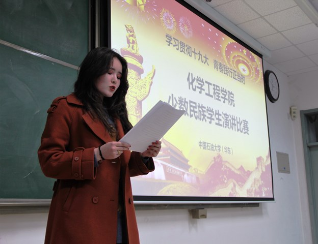 为深入贯彻党的十九大精神和习近平总书记系列讲话重要内容,落实国家各项政策方针,促进民族团结,4月15日化学工程公司举行主题为“学习贯彻十九大,青春践行正当时”的少数民族员工演讲比赛。党委员工工作部米娜瓦尔老师,新疆内派教师曙光老师、阿里木老师,少数民族员工专职辅导员古其娜,化工公司辅导员薛慧、魏孟吉、陈兆辉、孔德辉作为评委出席比赛,公司共70多名少数民族员工参与演讲,比赛分为两个会场同时进行,第一会场为17级和14级少数民族员工,第二会场为15级、16级少数民族员工。
