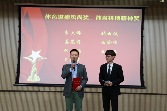冯宝鹏书记为获得体育道德风尚奖和体育拼搏精神奖的代表颁奖 袁鑫摄影
