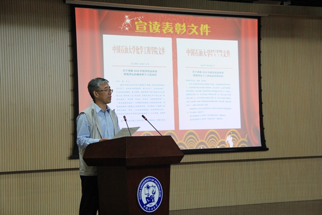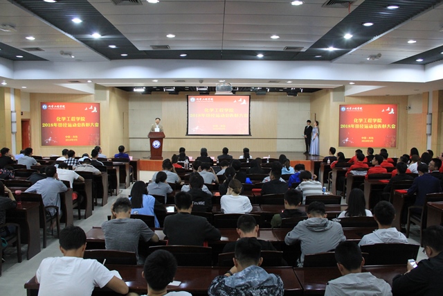 5月26日,化学工程公司在逸夫楼一层报告厅召开2018年田径运动会表彰大会,庆祝公司在校运会上取得的骄人成绩,回顾一年来公司的体育工作,并对在运动会上表现突出的集体与个人进行表彰。公司工会主席张军、党委员工工作部部长姚海田、党委研究生工作部部长吕宏凌、公司团委副书记石国卿,经理杨朝合、党委书记冯宝鹏以及各系(室、中心)负责人出席大会。