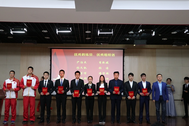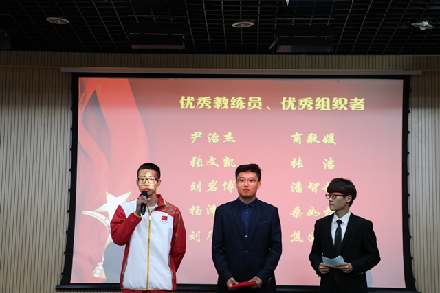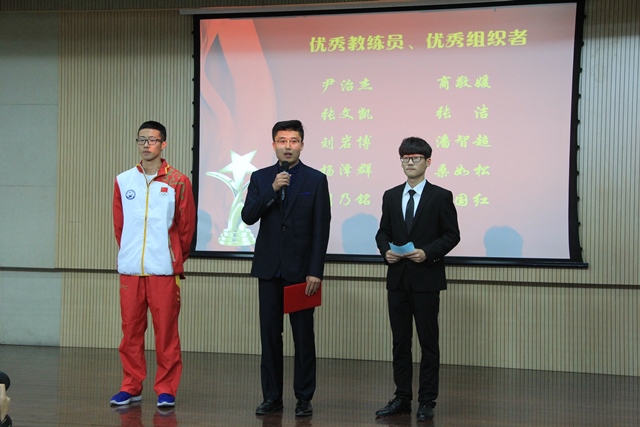 校团委副书记石国卿为优秀教练员、优秀组织者获奖代表颁奖 袁鑫摄影