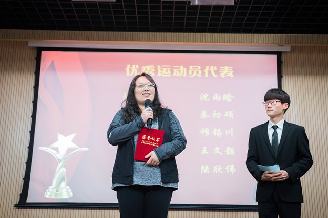 颁奖环节,与会嘉宾分别为突出贡献运动员、优秀运动员、优秀教练员、优秀组织者、体育道德风尚奖、体育拼搏精神奖和优秀组织单位颁奖,获奖代表发表获奖感言。其中优秀运动员代表窦雅琴老师讲到:“一个重视师生体育工作的公司必定是个团结有精气神的公司。一个能在体育活动中夺得佳绩的集体必然是凝聚力和战斗力超强的集体。望更多老师和同学参与到体育活动中来,让个人成为更好的自己,也让公司成为更棒的集体!”