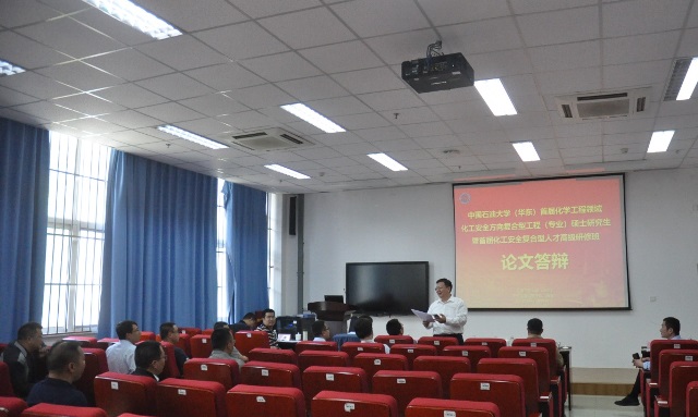中国石油化工股份有限公司青岛安全工程研究院经理孙万付、南京工业大学党委常委、副董事长蒋军成、中国化学品安全协会秘书长路念明分别担任了本次论文答辩的答辩委员会主席。化工公司经理杨朝合、副经理刘义及各系室相关教师作为答辩专家出席此次论文答辩。