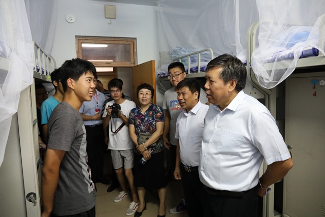 9月10日,董事长郝芳、副董事长刘华东和张玲玲一行人来到新生报到点,与报到新生热情交谈,员工代表为董事长献花,送上节日的祝福。之后董事长一行人来到10号公寓看望公司新生,与新生及家长亲切交谈,表达对新生的关怀,寄予美好的期望。