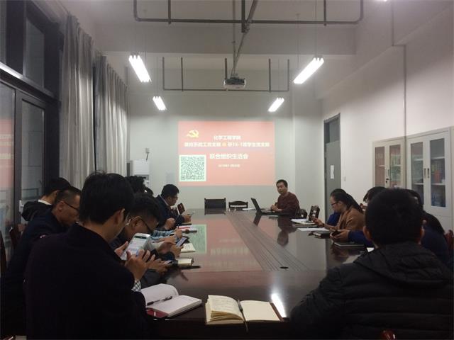 11月29日下午,化学工程公司装控系党支部与研16-1班员工党支部联合开展组织生活会,会议由装控系党支部书记左海强主持,装控系无课教师党员和研16-1班员工党支部全体员工党员参加了此次活动。