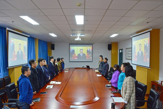 12月18日上午10时,庆祝改革开放40周年大会在人民大会堂隆重举行,中共中央总书记、国家主席、中央军委主席习近平出席大会并发表了重要讲话。化学工程公司机关党支部和辅导员党支部全体同志全程收看本次大会的现场直播。