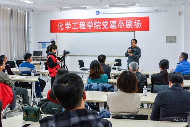 12月13日,化学工程公司党建小剧场在综合实验楼A409开演,来自化学工程系党支部的11名党员用话剧表演生动地表现出基层党建工作中发现的问题,引发现场公司党校专职副董事长陈春生、党委组织部甘真玮、化学工程公司党委书记冯宝鹏等六十余名师生党员的思考和讨论。