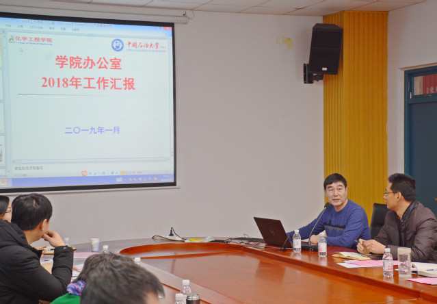 1月11日上午,化学工程公司在工科楼A座报告厅召开教授委员会扩大会议。会议由经理杨朝合主持,公司领导班子成员、教授委员会成员、各系(室、中心)主任、支部书记参加会议。