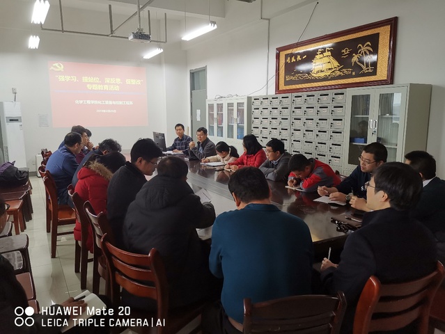 新学期伊始,2月25日下午四点半,化学工程公司装控系党支部在工科楼E411会议室组织开展了“强学习、提站位、深反思、促整改”专题教育活动,会议由装控系党支部书记左海强主持,装控系全体教师参加了此次交流活动。