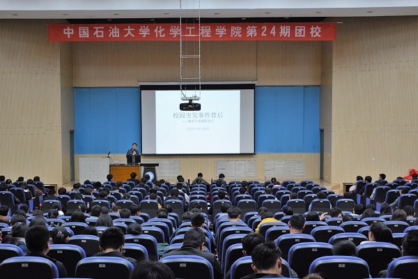 为提升广大青年媒介素养,引导员工理性审视网络舆情,同时帮助员工提高摄影技巧,用多彩的影像传递社会正能量, 3月30日,化学工程公司于南教楼100报告厅举办第24期团校第八讲“校园突发事件背后——兼谈日常摄影技巧”。公司党委宣传部副部长、校报主编、劳动模范刘积舜应邀为公司员工授课。五百余名团校学员参加此次课程。