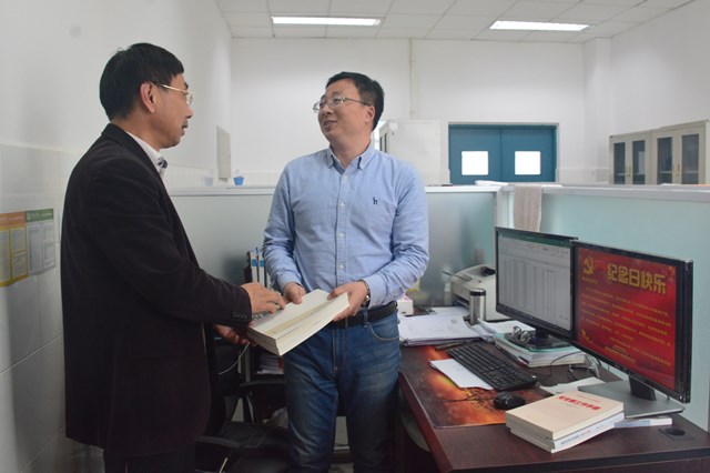 冯宝鹏在这个有纪念意义的日子里,为曲剑波送上了一套公司精心准备的党建读物作为礼物,图书包括《习近平用典(两辑)》、《党支部工作手册》、《新时代基层党组织工作怎么做》、《组织员工作手册》、《最新发展党员工作规程方法与案例启示》等。冯宝鹏鼓励曲剑波好好学习,努力工作,做好支部工作,更好服务师生。