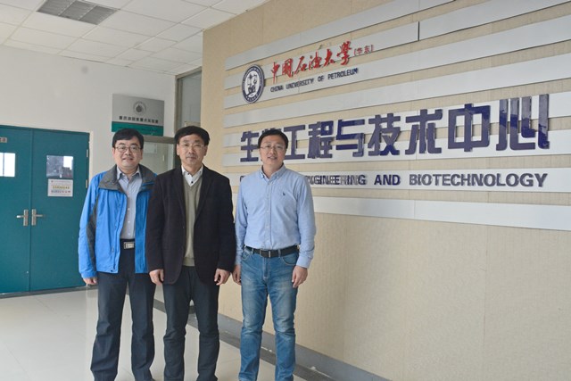 冯宝鹏、曲剑波、生物工程与技术中心原党支部书记于道永合影