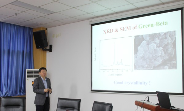 报告中,肖丰收教授介绍了目前沸石分子筛的研究热点及发展趋势,并重点从沸石的绿色合成、分子筛化学反应机理的思考、分子筛在能源和环境方面的应用以及实现分子筛工业化生产的新方法四个方面阐述了其团队在分子筛绿色合成方面所开展的系列创新性研究工作。此外,肖丰收还介绍了介孔沸石材料的软模板合成、多孔有机聚合物催化材料的合成,以及这些催化材料在加氢反应、生物质转化、氢甲酰化、氰化反应中的应用。最后,在场的老师和同学进行了提问。