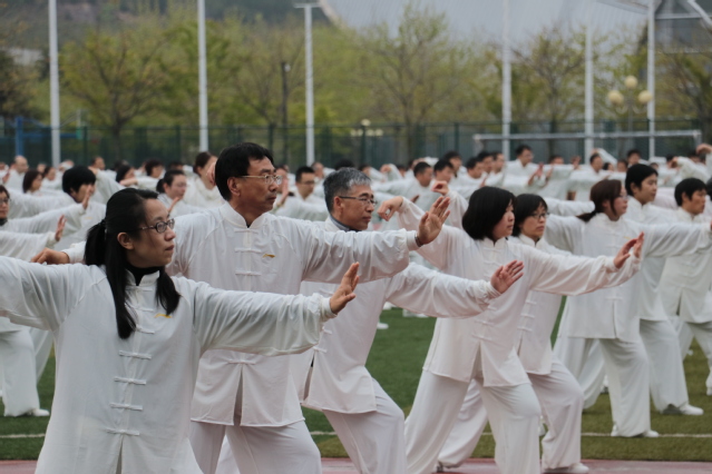 太极拳团体演练,已被公司列为教职工群体活动的重要项目,确定逐步推广普及,使之成为教职工终身受益的健身运动技能。公司从去年11月开始选派人员参加校工会组织的太极拳专业学习培训,按照“教练带骨干、骨干带队员”的训练模式进行组织。今年元月份寒假期间,公司邀请校体育教学部专业教师郭荣福,针对练习积极分子进行专项技术指导和强化训练,力求精准掌握太极拳的“神意形”,做到“身形身法、手形手法、步形步法”合乎规范,有利于进一步的教和学。春季开学以后,公司工会制定太极拳教学计划,抽出专门时间,组织集体练习。利用一个月时间,每天上午十点,工会主席杜峰老师适时督促和提醒,要求大家克服困难,在繁忙的教学科研工作间隙,既是要认真准备公司太极拳的展演,也是让大家有机会利用太极拳的运动优势,活动筋骨,锻炼身体,调理身心。在此期间,公司书记和经理身体力行、率先垂范。工会组织优秀教练员张秀英及张云波等老师和长期采用太极拳健身的老教师如郑经堂教授,进行技术指导力求动作到位、套路准确,身心调和。公司教师积极参与,不但规定时间尽量到场,业余时间相互切磋交流,自觉将其当做为集体荣誉而练习,为活跃化院气氛而聚会。这些有力的措施保证了太极拳的学习,并最终在公司的太极拳展演活动中取得一等奖的优异成绩。