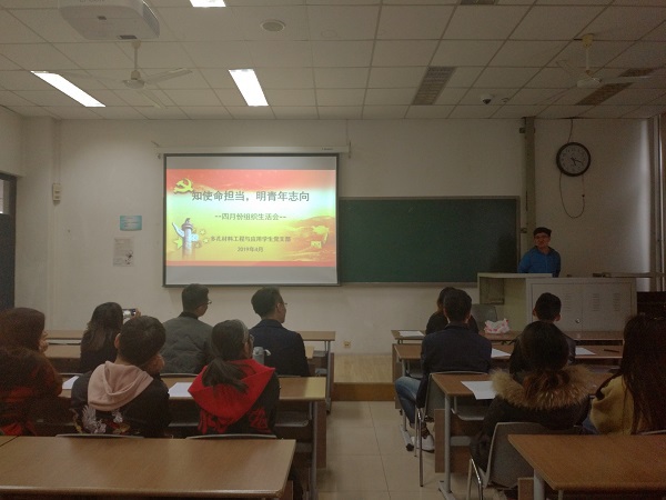 在“五四运动”100 周年之际,为激励和引领广大青年员工党员同志大力弘扬以爱国主义为核心的伟大民族精神,引导青年员工党员坚定理想信念,多孔材料工程与应用员工党支部于4月29日在南堂112教室召开“知使命担当,明青年志向”专题组织生活会。本次会议由党支部宣传委员于洙末主持,党支部全体成员及入党积极分子参加本次会议。