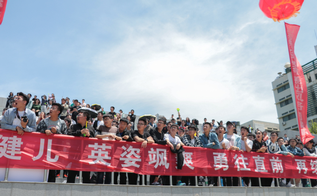 公司员工参与啦啦操表演被托举 魏孟吉摄影