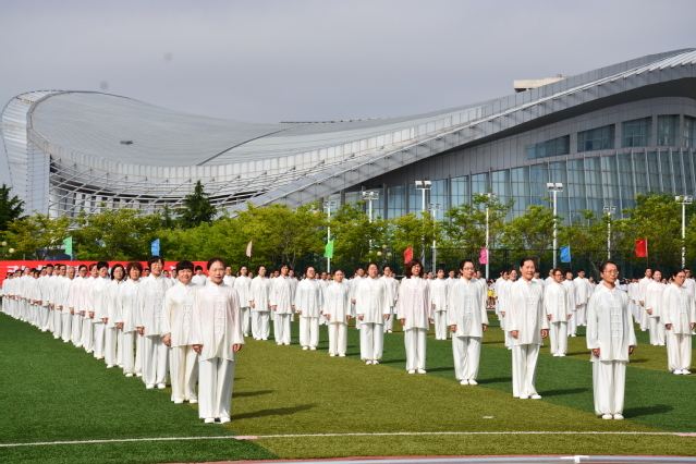 裁判员代表于晓红、运动员代表齐天一在主席台下庄严宣誓,公司党委书记王勇在热烈的掌声中宣布中国石油大学2019年田径运动会开幕,七色彩烟直冲云霄,将运动场装扮的格外美丽。运动场上,富有朝气的广播体操表演、教职工太极拳表演和啦啦操教学成果展示依次上演,为观众们带来了一场视觉盛宴。