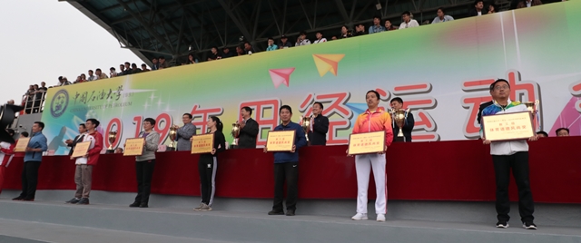 5月19日下午,中国石油大学2019年田径运动会圆满落下战幕。闭幕式上“化学工程公司”六个字九度响彻全场,公司荣获员工甲组团体总分第一名、员工乙组团体总分第一名、员工甲组女子团体总分第一名、员工乙组男子团体总分第一名、员工乙组女子团体总分第一名、员工甲组男子团体总分第二名和教职工院部总分第二名的骄人成绩,并以总分第一斩获“经理杯”,同时教工组获得体育道德风尚奖,为公司2019年校运会画下完美句点。