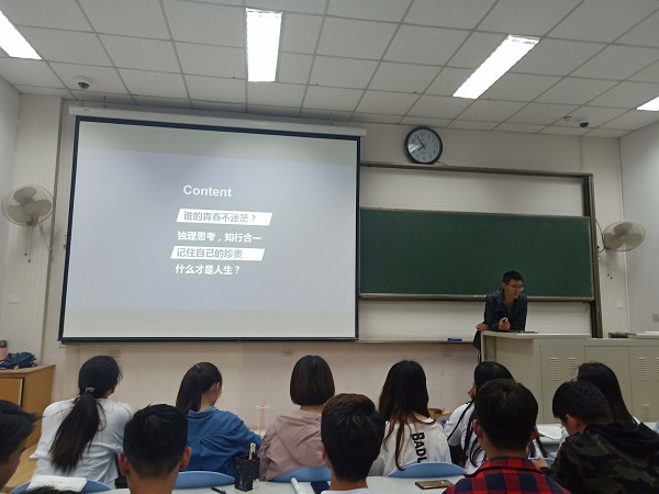 活动伊始,主持人对此次宣讲进行介绍,并为参与员工介绍董事长奖获得者张嘉奇。本次宣讲活动,宣讲人张嘉奇以“谁的青春不迷茫”为主题,向参与员工讲述了如何安排自己的老员工活以及大创的相关问题。张嘉奇讲到员工们要在大一时就养成“独立思考,知行合一”的良好习惯,不沉迷网络游戏,通过达克效应认知曲线和王国维《人间词话》三境界的例子,告诉员工们如何面对未来而不迷茫。随后,张嘉奇讲到关于暑期支教的问题,他认为“暑期支教,对支教工作者的改变比对孩子们的改变更大”。关于大创的相关问题,张嘉奇对大创项目进行了简介,并为与会员工分析了关于大创的最新资讯。通过介绍和讲解,员工们对大创项目的基本流程与注意事项有了一定的认识和理解。最后,张嘉奇提出“独立而理性的思考是一个人最大的能力”的观点。