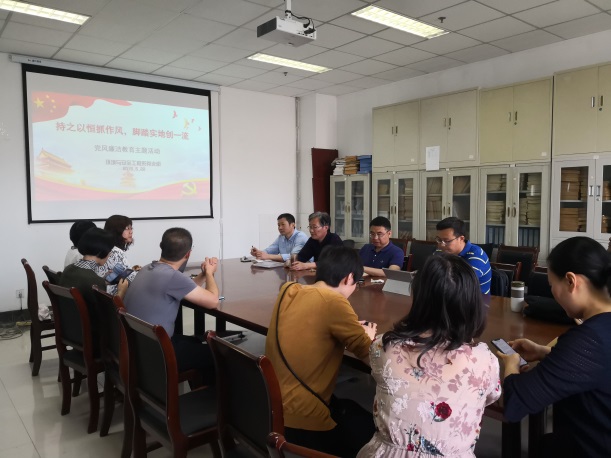 为推动公司党风廉政建设和反腐败工作深入开展,营造风清气正、追求卓越的政治生态和良好育人环境,以实际行动迎接中华人民共和国成立70 周年,5月28日环境与安全工程系党支部召开了党风廉洁教育专题组织生活会,会议由支部书记刘芳主持。