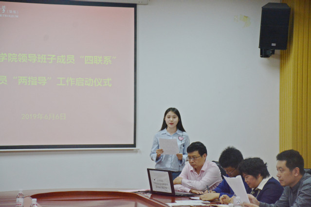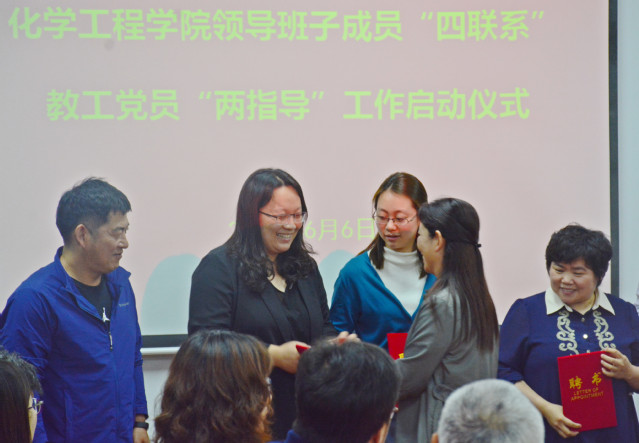 会上,王迅简要汇报了公司员工党建基本情况,重点介绍了员工纵向党支部调整以及探索试点的员工社区党支部建设情况,并宣读《关于开展化学工程公司领导班子成员“四联系”工作的通知》《关于开展化学工程公司教工党员“两指导”工作的通知》《关于聘任兼职组织员的通知》。其中,“四联系”是指领导班子成员要增强服务意识,联系院属单位、联系员工党支部、联系员工班级、联系员工课堂,加强基层党支部和班级建设;“两指导”是指教工党员担任员工党支部指导教师和党员发展指导教师,指导员工支部规范、创新开展工作,参与入党积极分子、预备党员培养,提升员工党员发展质量。