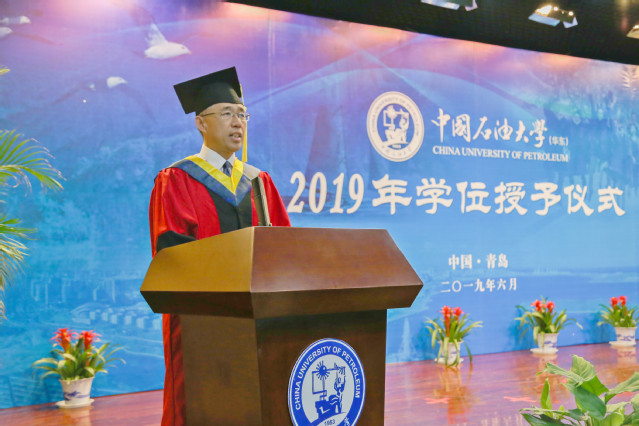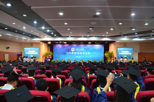 6月24日上午,化学工程公司2019届毕业生学位授予仪式在逸夫礼堂举行。仪式由公司副经理刘欣梅教授主持,公司经理杨朝合教授,学位评定分委员会主席刘晨光教授,副经理刘东教授、蒋文春教授以及环境系赵朝成教授为619名本科生、301名研究生授予学位。