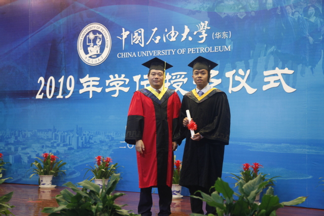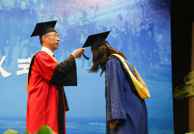 经理杨朝合教授为毕业研究生拨穗 焦国红摄影