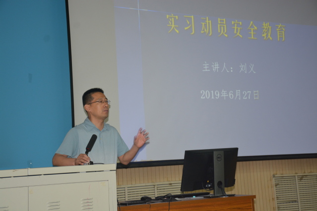 活动中,化工公司副经理刘义向参加实习的师生强调了生产实习期间各项注意事项,结合近几年的企业安全事故,提醒员工们注重安全,遵守实习纪律。