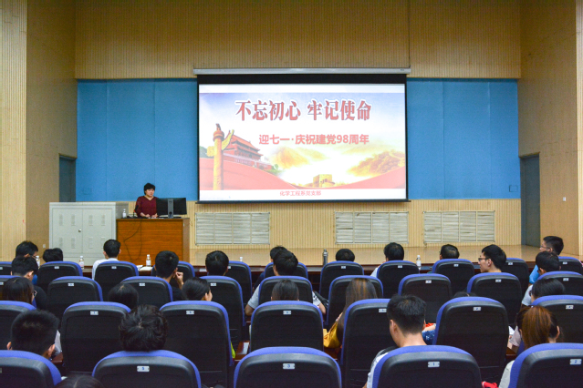 接着,化工系党支部书记丁传芹主讲了“迎七一・庆祝建党98周年”主题党课,她通过回顾中国共产党的发展历史,分析党逐步发展壮大的原因在于党始终坚守为中国人民谋幸福、为中华民族谋复兴这个初心和使命,义无反顾向着这个目标前进,从而赢得了人民衷心拥护和坚定支持。新时代发展背景下,需要每个党员结合自身实际,“不忘初心、牢记使命”,通过开展自我革命,找差距、抓落实,用实际行动支持党的建设、为国家发展贡献力量。