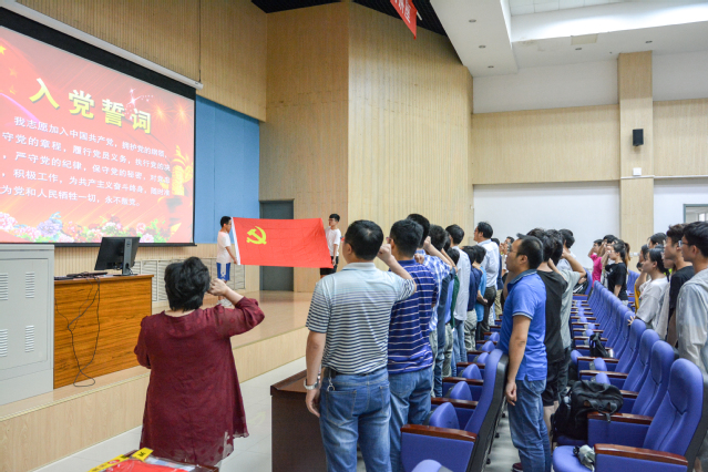 主题教育活动最后,化工系党支部党员教师同2016级员工党员一起进行了“重温入党誓词”仪式,庆祝建党98周年。