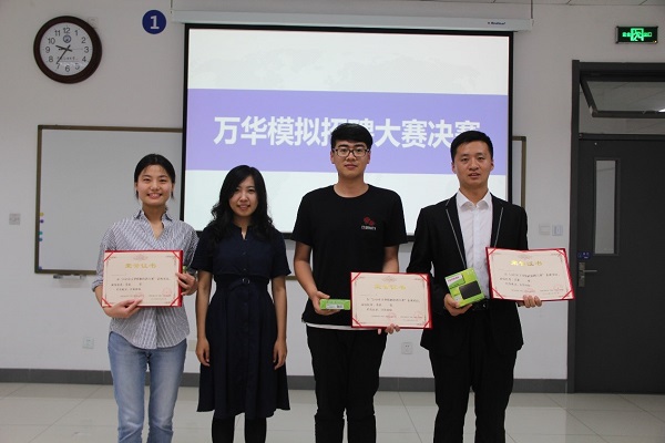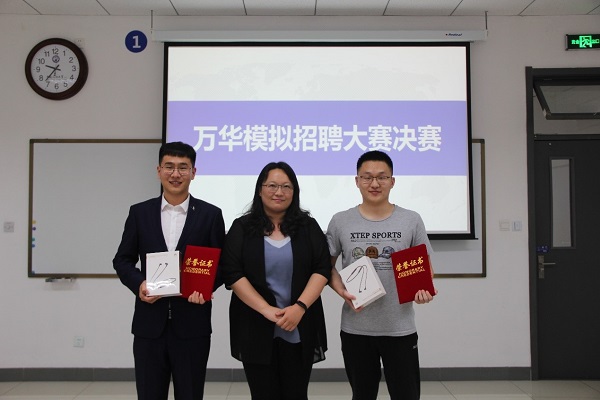 经过两个多小时的激烈角逐,最终王玉凭借超强的实力脱颖而出,摘得了本次模拟面试大赛的桂冠,而赵洪飞和张福蕾凭借着优异的发挥,获得二等奖,宋存永、谢佳濛和宋龙飞也凭借着自己的能力获得了大赛的三等奖,赵洪飞、张福蕾、张海涛、宋存永、谢佳濛和吴润国六位选手获得了优秀简历奖,评委们为获奖选手颁发了证书及奖品。本次模拟面试大赛在热烈的掌声中落下了帷幕,赛后,评委们对选手的表现作了总结点评,肯定了同学们的综合能力,同时针对选手们在面试中的问题给出了具体指导性意见和建议。